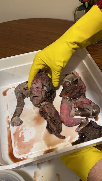 Baby Nummer 4 ist schätzungsweise 28 Wochen alt und befindet sich noch in der Fruchtblase. Das Geschlecht des Babys ist aktuell nicht feststellbar. Da sich das Baby noch in der Fruchtblase befindet, ist die Wahrscheinlichkeit, dass das Kind lebend geboren und dann getötet wurde, extrem hoch. Dies wäre selbst in Washington DC eine Straftat.